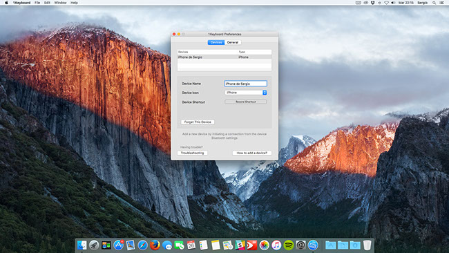 Sin duda alguna, una de las ventajas más interesantes de 1Keyboard es su sencillo funcionamiento. Tan pronto hayas descargado la app de la que hablamos solo tendrás que abrirla y añadir el primero de tus dispositivos. Para ello, simplemente hay que asegurarse de tener activa y visible la conexión Bluetooth del Mac y vincular el dispositivo al ordenador desde el menú de ajustes. Por supuesto, este proceso solo es necesario llevarlo a cabo la primera vez, ya que una vez configurados los dispositivos a utilizar con 1Keyboard podrás escribir en ellos utilizando el teclado de tu Mac en cuestión de segundos. Para ello solo hay que hacer clic en el icono de la barra de tareas de 1Keyboard y seleccionar alguno de los dispositivos previamente configurados (cuyo nombre podrás personalizar para localizarlos rápidamente). Además, no podemos dejar de mencionar la posibilidad de configurar atajos de teclado para escoger el dispositivo en el que queremos escribir sin tener que utilizar el menú de la app, algo que resulta de extrema utilidad. Tal y como puedes ver en las capturas de pantalla, 1Keyboard cuenta con un sencillo menú de preferencias desde el que es posible ajustar diferentes aspectos de la aplicación. Por ejemplo, es posible activar la apertura automática de la aplicación al iniciar sesión en el ordenador, activar o desactivar los efectos de sonido y mostrar u ocultar el icono del dock. Llegados a este punto es importante mencionar algo que para muchos puede resultar una pega importante. Nos referimos a la imposibilidad de pulsar la tecla “Enviar” en Mensajes o WhatsApp desde iPhone o iPad, algo que según la compañía detrás del desarrollo de 1Keyboard es una limitación impuesta por Apple, que no permite pulsar el botón enviar si nos encontramos utilizando un teclado Bluetooth. Aun así, no hemos tenido este problema al utilizar la app Mensajes desde el iPad, pero sí en el caso de la versión para iPhone y utilizando WhatsApp.