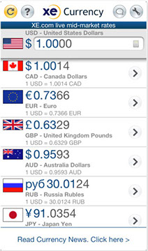 Si no quieres que te engañen con el cambio de moneda, también existe, cómo no, una app para eso. A mí la que más me gusta es XE Currency app for iPhone que nos permitirá realizar conversiones entre cualquier moneda.