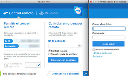 Si estas opciones te parecen demasiado complejas de configurar hay otras opciones en el mercado mucho más sencillas y a la vez tanto o más profesionales que las anteriores. Hablo de LogMeIn y TeamViewer, las dos grandes aplicaciones (al menos para el que escribe) en este campo. TeamViewer tiene como ventaja que es gratuita para uso doméstico, aunque evidentemente no para uso profesional. Esta aplicación nos va a permitir controlar la pantalla de nuestro Mac desde el iPhone (por ejemplo) en poco más de tres minutos. Descargamos la aplicación desde su web, instalamos, nos registramos y desde su app homóloga en iOS podremos acceder a nuestro Mac tan solo con introducir el ID y la contraseña que previamente nos ha proporcionado Teamviewer para nuestro equipo después de la instalación.