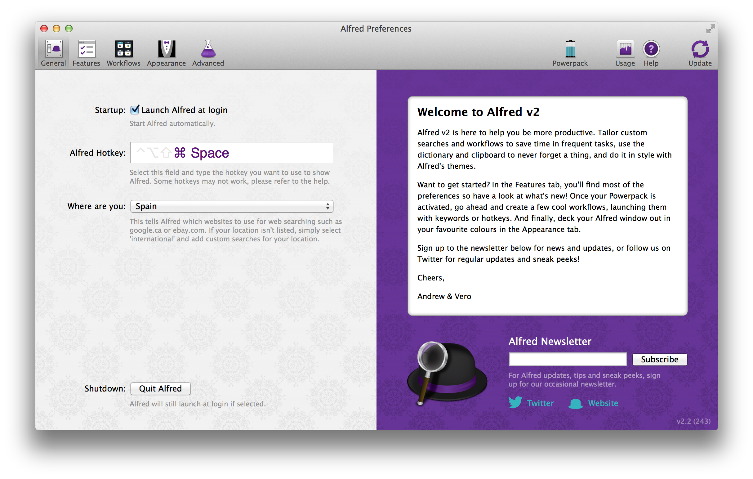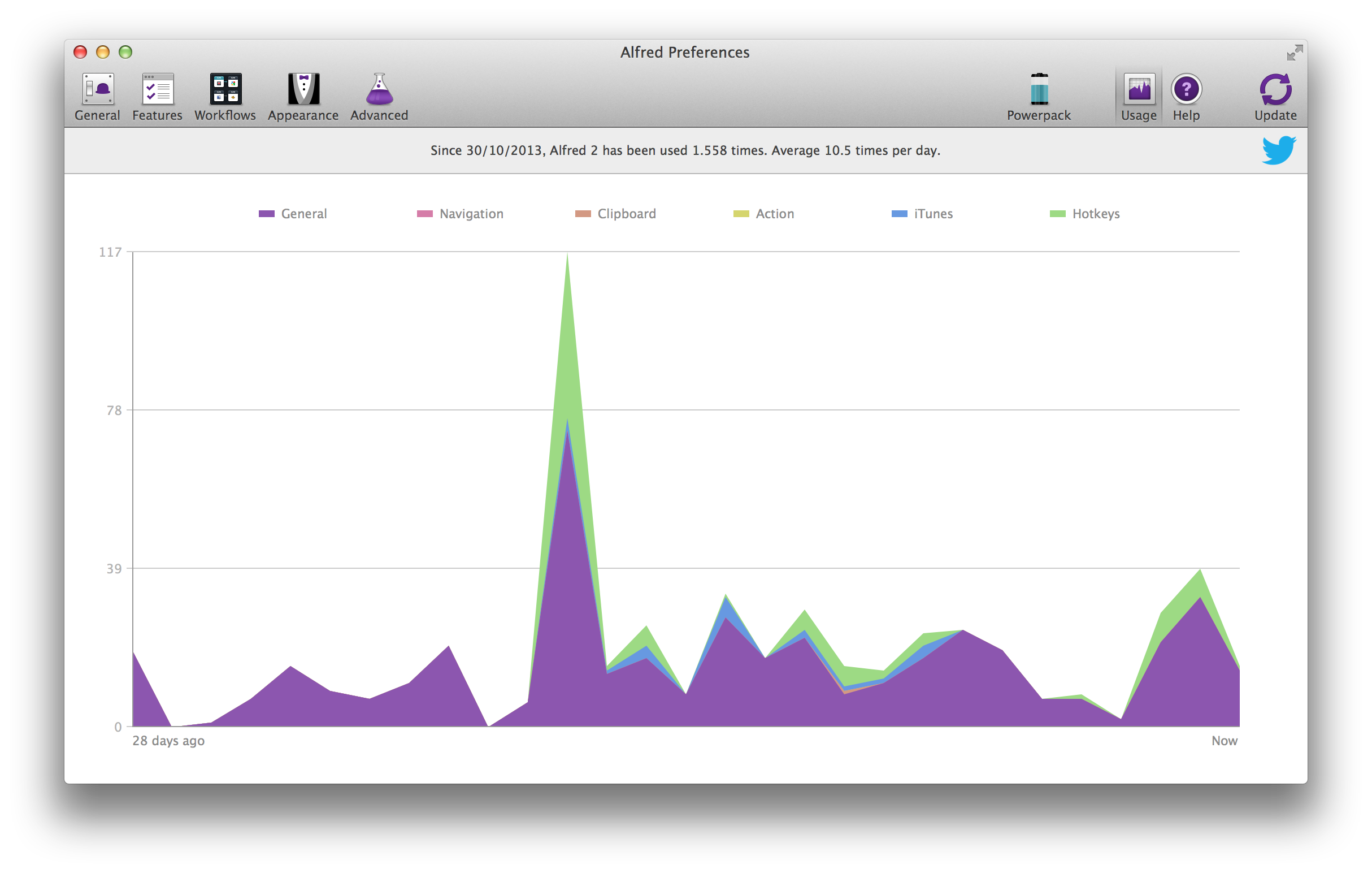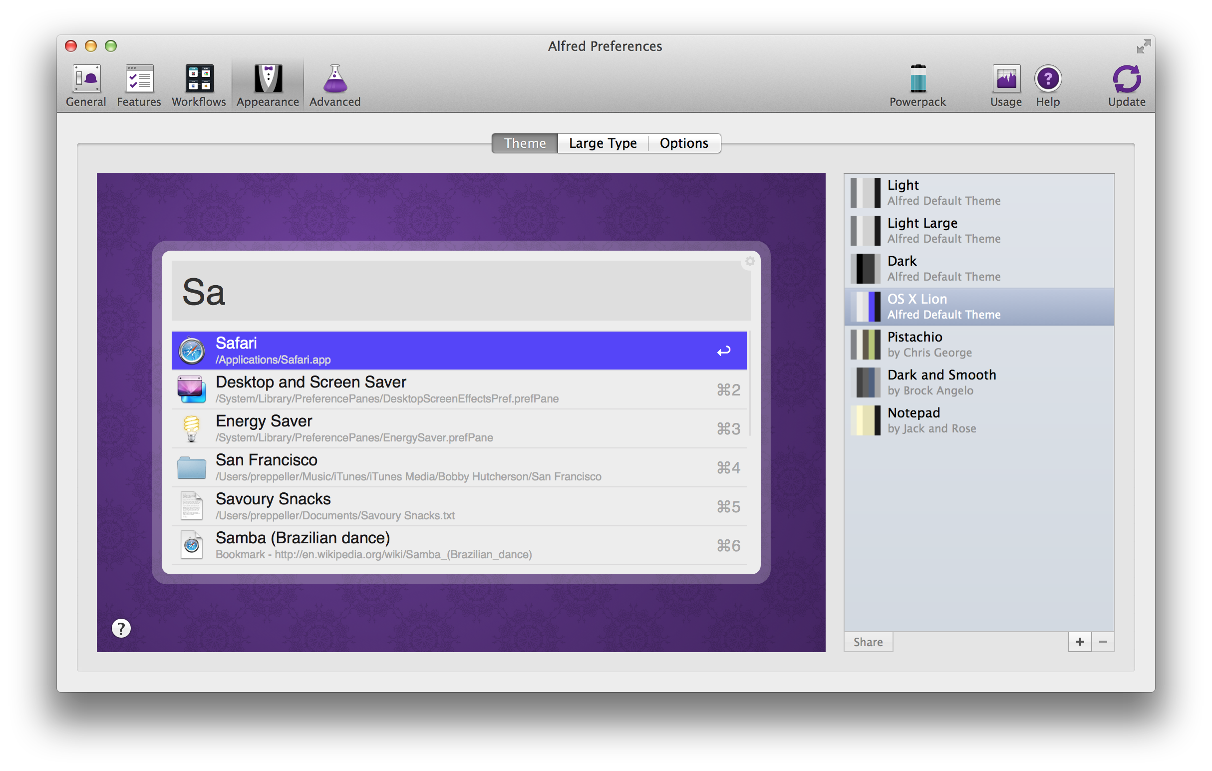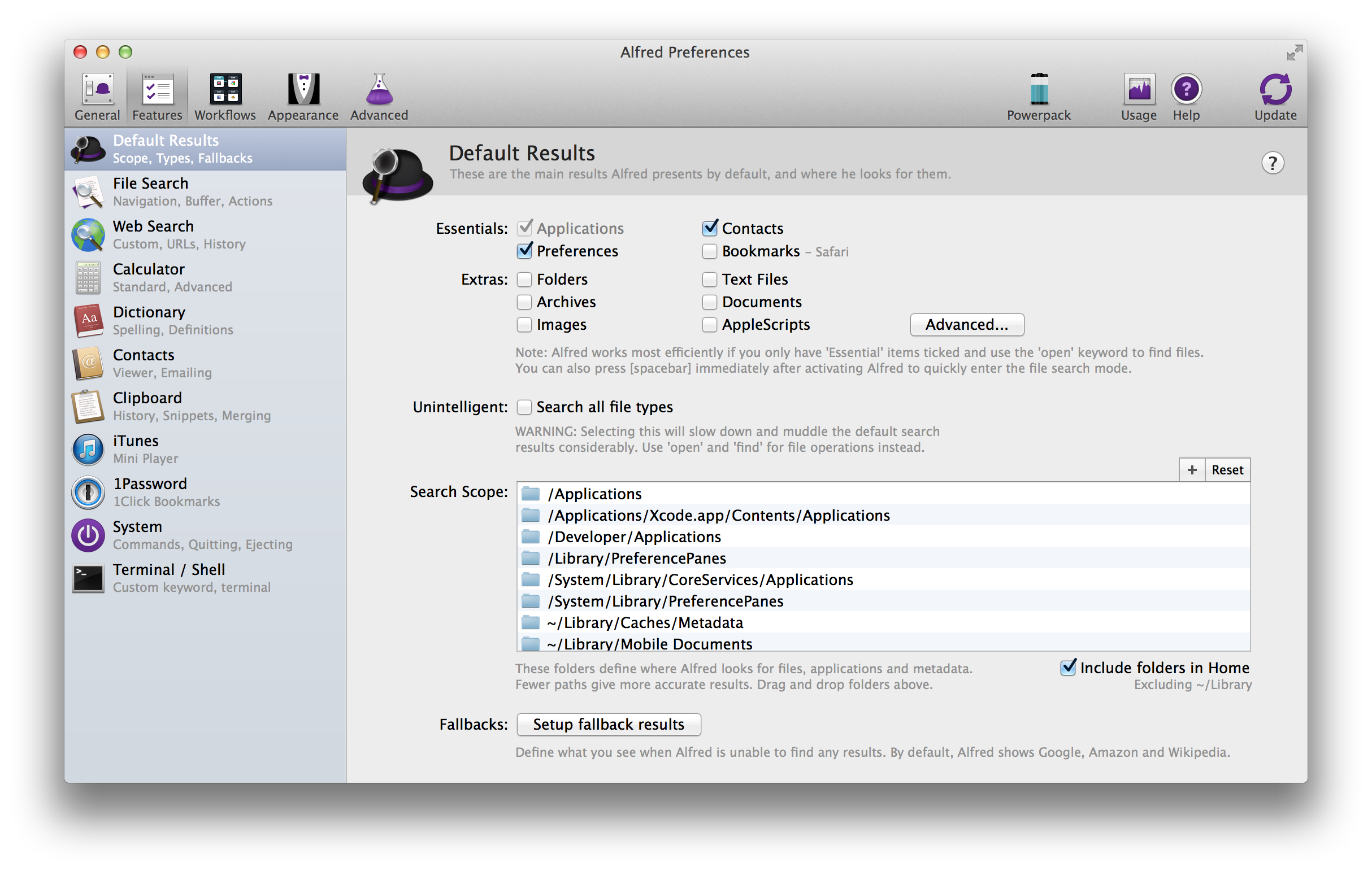 Ahora que ya conocemos qué aspecto tiene Alfred, es hora de ver qué es capaz de hacer y esto varía según la versión que tengamos en nuestro Mac. Gracias a su peculiar modelo de negocio, nos encontramos con que la app es totalmente gratuita en su variante más sencilla y en el caso de querer todas las opciones, podemos adquirir el PowerPack por unos 21€. Si bien a simple vista puede parecer que están aplicando el tan criticado modelo Freemium del App Store, la realidad es completamente distinta. En vez de distribuir una versión de prueba totalmente capada que nos obligue cada dos por tres a desbloquear cualquier nimiedad por 0,99€, Alfred es en su versión gratuita una app completa que podemos utilizar sin restricciones eso sí, las características más avanzadas e interesantes han sido reservadas para el PowerPack.