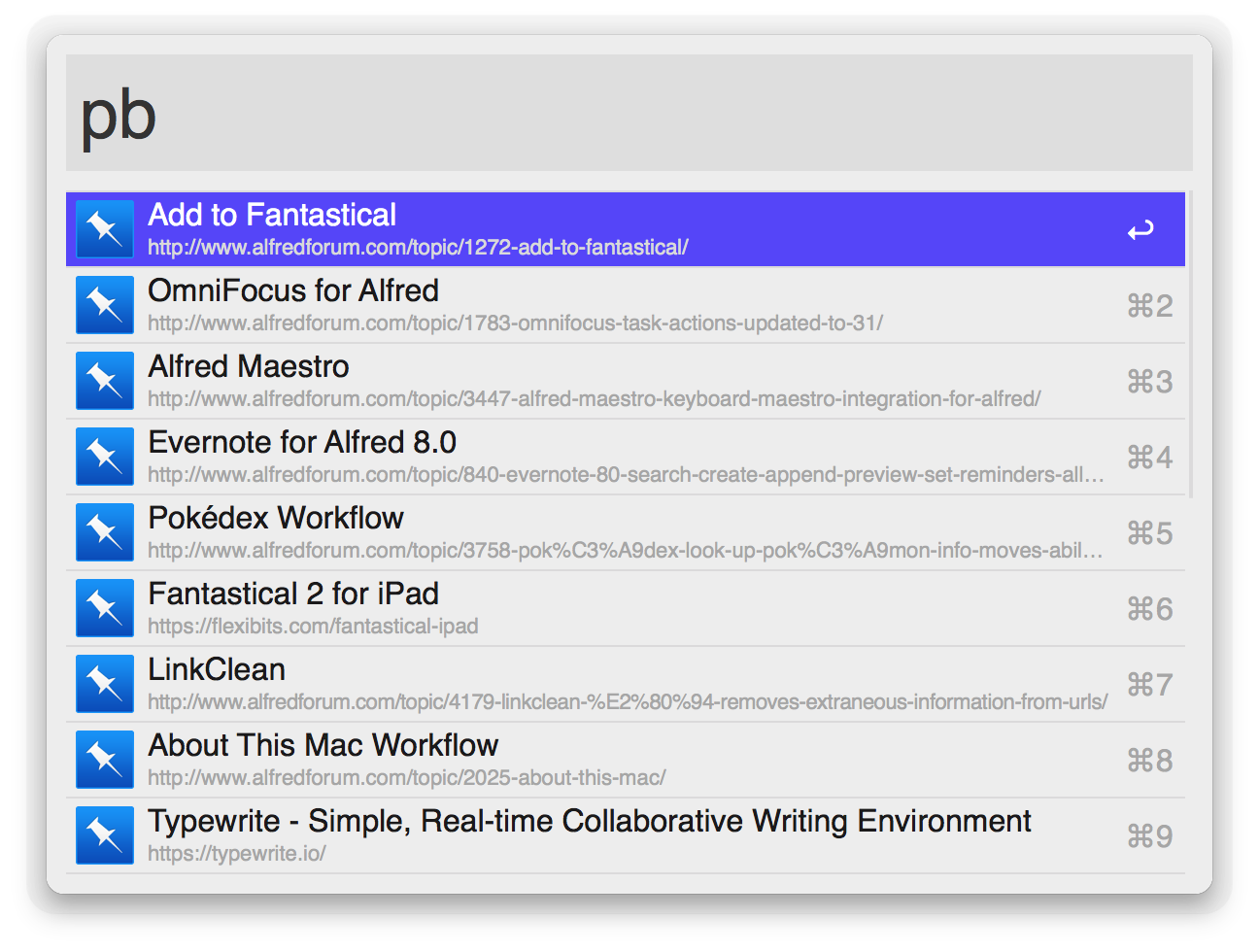 Como periodista digital que soy, el 99% de los textos que escribo van destinados a Internet. Esto supone que la mayoría de ellos incluyan varios enlaces a páginas que complementen la información por ejemplo. Desde hace algún tiempo vengo utilizando Pinboard a modo de base de datos de todos estos enlaces interesantes. Gracias a este flujo de trabajo puedo acceder a mis enlaces, buscar entre todos ellos y copiar al portapapeles el que necesito. Todo sin salir del lanzador.