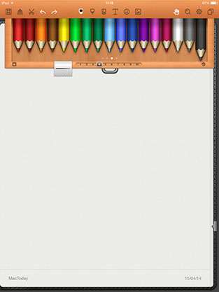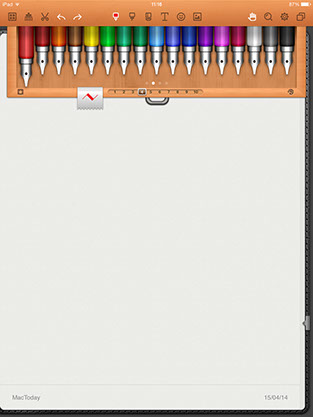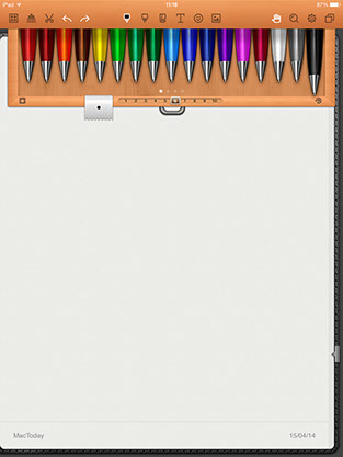 Una vez creado el bloc de base, podemos abrirlo pulsando sobre él. Es en este momento en que Noteshelf se nos desplegará en todo su esplendor, ofreciéndonos todas sus posibilidades. En la barra superior podremos elegir entre multitud de estilos de trazado: de tipo lápiz, boli, pluma, rotulador. En cada caso podemos elegir color y grosor de trazado, además de tener disponible varios tipos de goma de borrar. Una vez tengamos nuestra herramienta de dibujo o escritura bien definida, podemos empezar a crear. Si nuestro objetivo es bosquejar una idea, generar un esquema o dibujar ahí tenemos un lienzo perfecto.