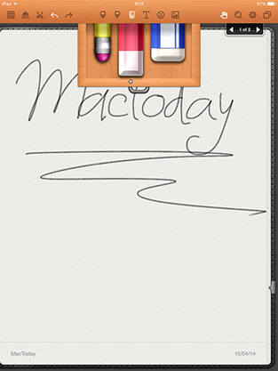 Es un sistema empleado por más aplicaciones de notas para tablets que Noteshelf ha sabido exprimir bien, pues incluso dentro de esta pequeña sección inferior se nos permite cierto nivel de edición. Su uso es una delicia debido a que permite que hasta con el propio dedo podamos escribir trazos finos con cierta definición. Además posee la característica nada desdeñable de detectar el final de la zona de escritura para así posibilitar seguir escribiendo en la misma línea, pues el salto se realiza de manera automática.