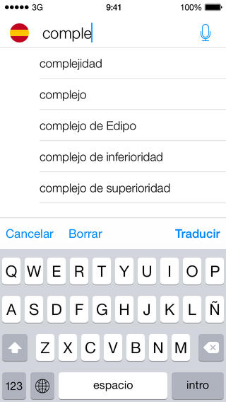 iTranslate es un traductor convencional con estética iOS 7 que no dejará indiferente a nadie. Cuenta con muchos idiomas, incluso con lectura de las palabras o frases, diccionario con múltiples resultados y voz a texto (premium). Es sencillo, rápido, potente, intuitivo y bastante certero con las traducciones. Requiere conexión a Internet. La app es gratis, pero cuenta con opción premium que elimina los anuncios y activa la función de voz a texto.