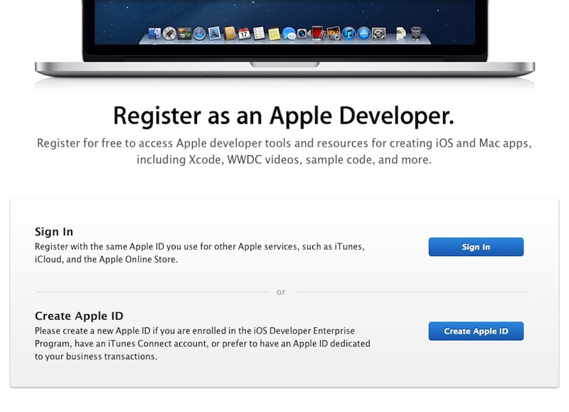 Para crear una cuenta de desarrollador debemos visitar la dirección https://developer.apple.com/programs/register