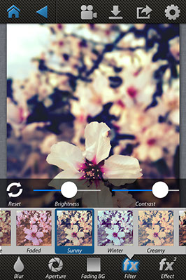 Tenemos la opción de filtros para aplicar a la imagen y elegimos “Sunny” pudiendo jugar con el brillo y contraste. No tocaremos el brillo pero sí le daremos algo de contraste para acentuar la imagen. Otra función que tiene el programa son los efectos y aplicaremos la opción “Vignetting” y “Sharpen” para oscurecer ligeramente la imagen y resaltarla.