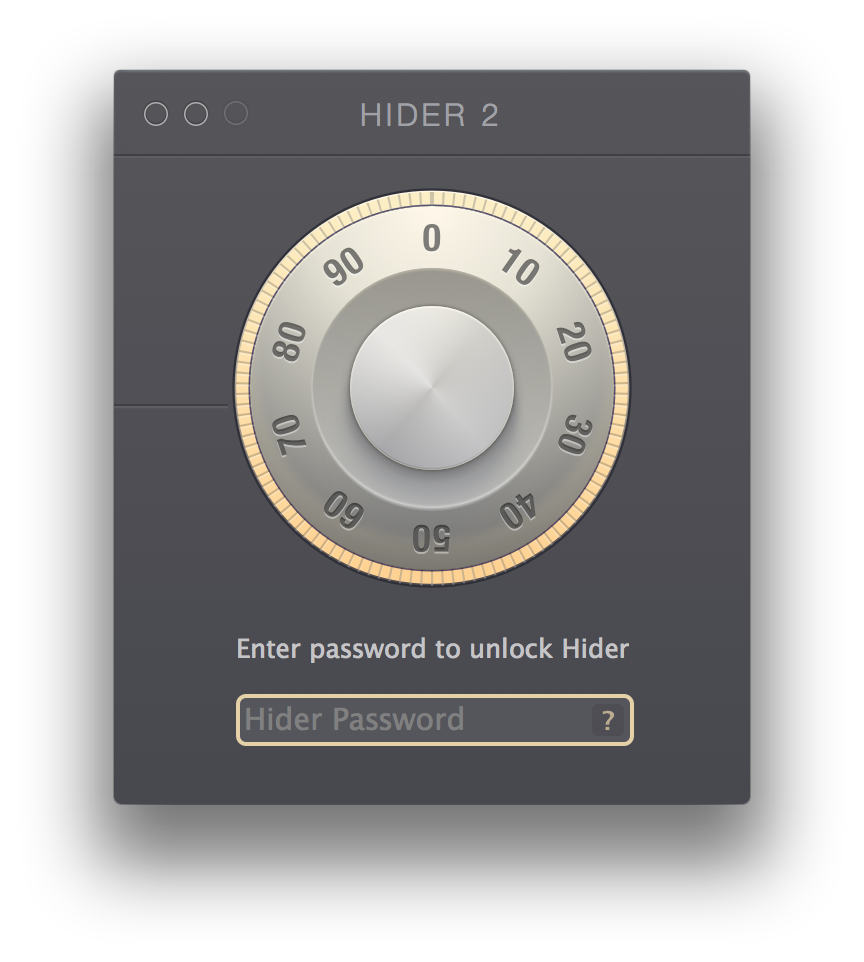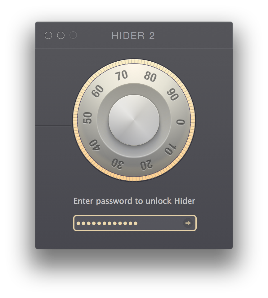 Pero si hay algo que diferencie a Hider 2 es su interfaz, que ha sido cuidada pixel a pixel. Con una estética que recuerda a las antiguas cajas fuertes, desbloquear la app para acceder a nuestros archivos es un placer incluso superior al de desbloquear 1Password. Es un claro ejemplo de skeumorfismo ejecutado con buen gusto y en su justa medida: Cada carácter de la contraseña que introduzcamos provocará que la rueda de nuestra “caja fuerte” rote en ambos sentidos hasta dar con la combinación correcta. Una vez dentro, nos encontramos con una interfaz que ha tomado mucho prestado del lenguaje visual de iOS 7 (y quizás algo de Tweetbot), aunque sin ser tan drástica con los botones, y que sin duda encajaría de forma perfecta en un hipotético OS X 10.10 rediseñado con el minimalismo en mente, aunque eso no significa que quede fuera de lugar en Mavericks.