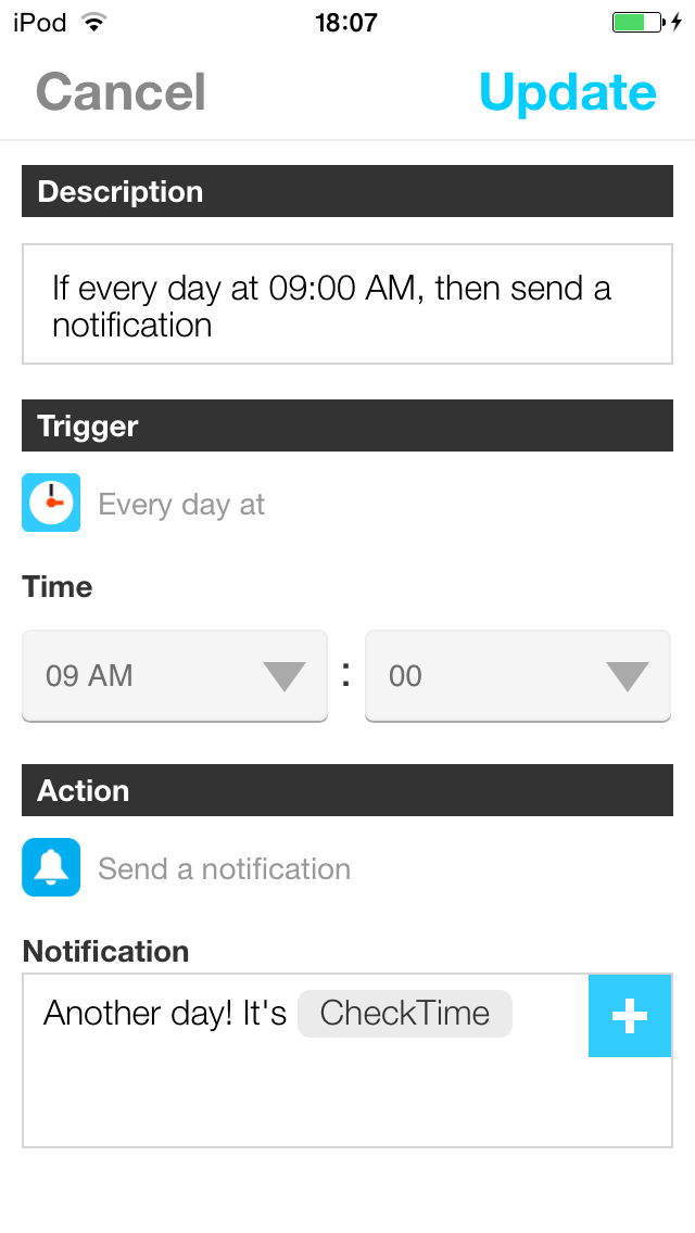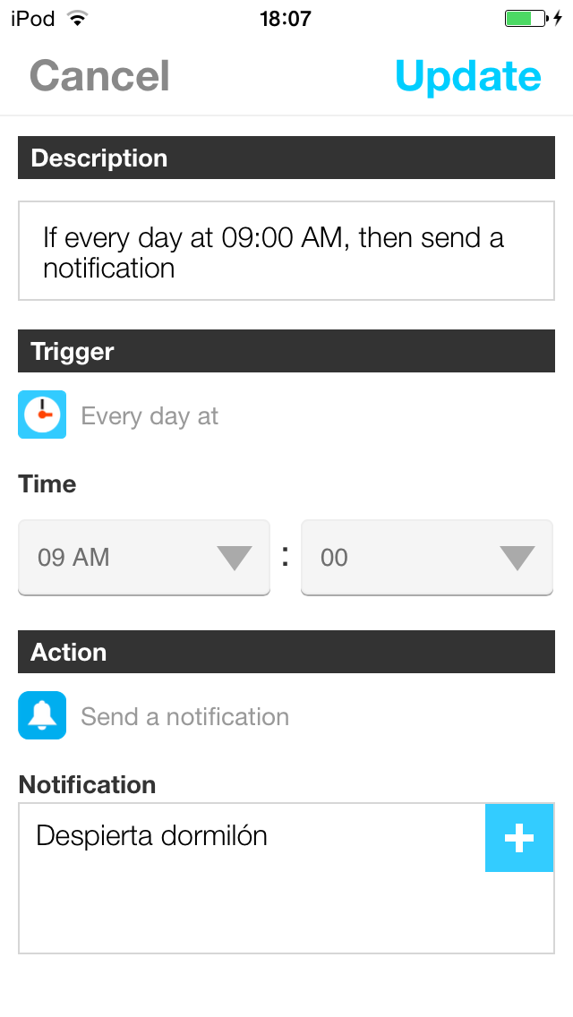 La interfaz de la app es muy buena, resulta increíblemente fácil de usar, hacer recetas es realmente sencillo, al igual que gestionarlas. La única pega que tiene es que está en inglés, por lo que la gente que no entienda muy bien ese idioma le costará un poco más usar IFTTT. Para el resto no supondrá ningún problema. Las acciones de los canales se actualizan de vez en cuando con más funciones, y suelen añadir más canales de vez en cuando.