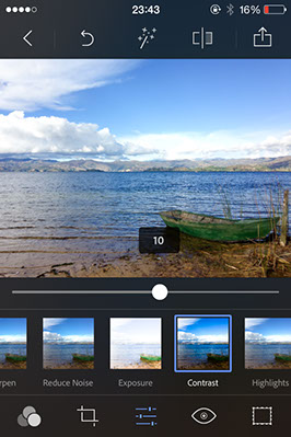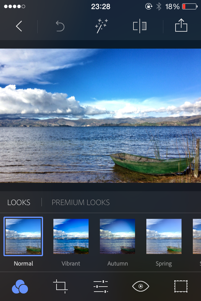 La aplicación “Adobe Photoshop Express” es muy sencilla de utilizar; posee lo suficiente para controlar ciertos aspectos de la imagen y también añadirle filtros gratuitos aunque también tienes la opción de los “Premium” de pago. Intenta tenerla siempre contigo.