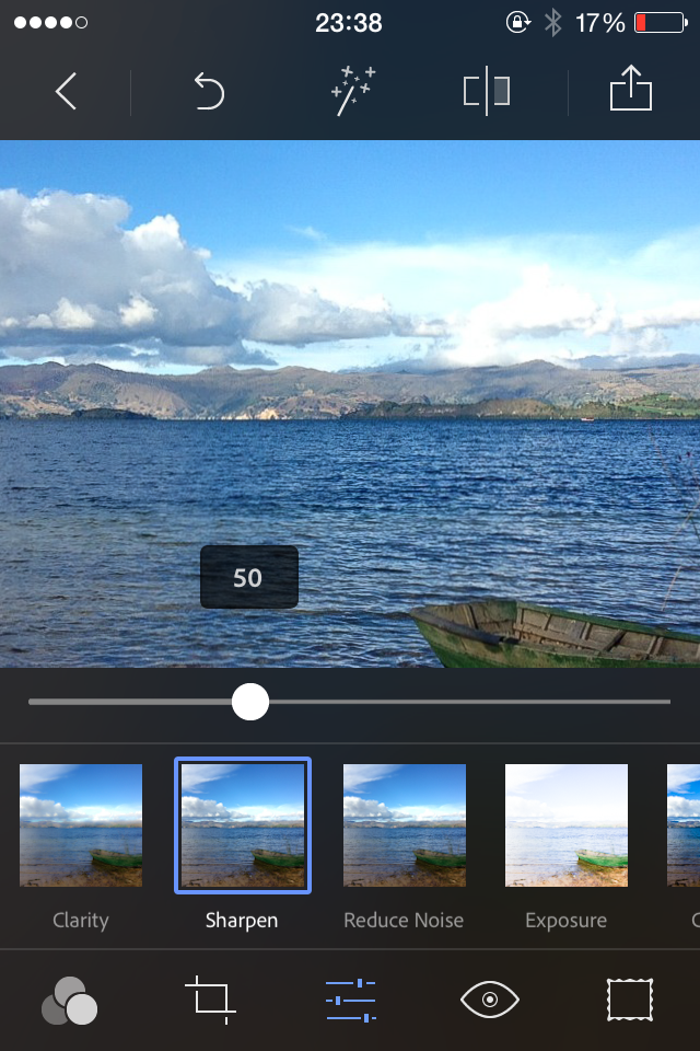 Vamos a intentar darle más definición a la fotografía con la opción “Sharpen” y manualmente podremos hacerlo hasta 50, por ejemplo.