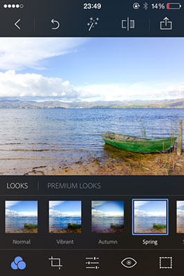 Finalmente, le aplicaremos el filtro “Spring” que nos hará centrarnos en el motivo de la barca más iluminada y colorida que acompaña a la naturaleza que tan bellamente se ha capturado por parte de nuestro lector. Puedes guardarla directamente en el “carrete” o bien compartirla en diferentes redes sociales.
