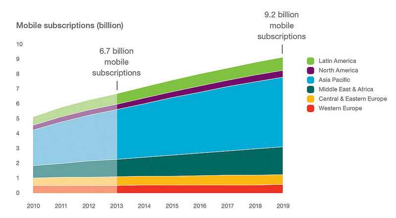 En 2015, según el último Ericsson Mobility Report, habrá más conexiones móviles que personas debido a las conexiones M2M (Machine-to-Machine) y al crecimiento de los mercados emergentes. En el primer trimestre de 2014, el número de suscripciones de banda ancha móvil ha crecido a una tasa de 35% year-over-year, y las conexiones móviles en este mismo periodo lo han hecho un 7% anual.