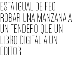 La piratería no es un problema de facilidad de copia sino de concienciación, y en muchos países no estamos concienciados de que hay que pagar por los contenidos por los que se disfruta, sean cine, música, libros o cualquier otro. Igual que uno no roba las manzanas expuestas a la puerta de un colmado por el hecho de que son fáciles de coger, no se deberían copiar archivos por el mero hecho de que sea fácil hacerlo. Suena raro, sí, pero es así de rotundo, está igual de feo robar una manzana a un tendero que un libro digital a un editor.