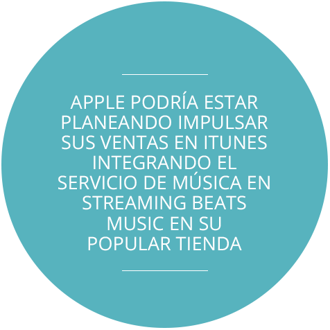 las dos piezas del puzzle: Apple podría estar planeando impulsar sus ventas en iTunes integrando el servicio de música en streaming Beats Music en su popular tienda. Hasta ahora, Apple no dispone de un servicio de suscripción de streaming de música propiamente dicho, ya que iTunes Radio e iTunes Match están enfocados de forma diferente, por lo que el hecho de que en Cupertino quieran zambullirse de cabeza en el mercado de la música en streaming no es nada descabellado. El mismísimo CEO de Spotify declaraba recientemente que siempre había asumido que Apple terminaría por ofrecer algún servicio de este tipo tarde o temprano, por lo que su última adquisición no le pilla de sorpresa. Al fin y al cabo, se trata de una de las maneras de consumir música más utilizadas en la actualidad.