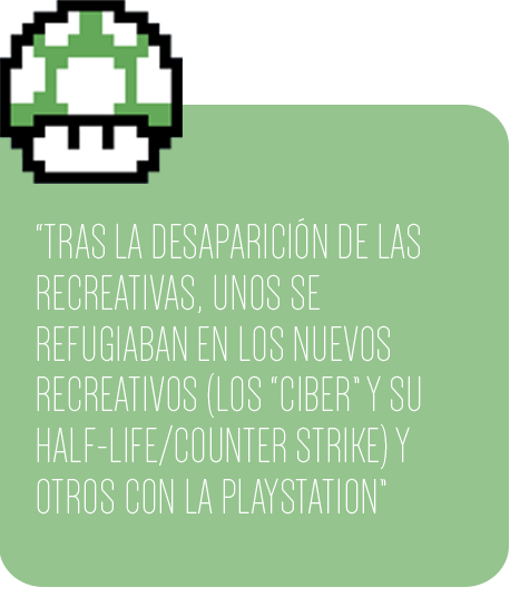 Poco a poco todo esto se fue diluyendo, los salones recreativos se esfumaron de la noche a la mañana como las tiendas de los cigarros electrónicos y este tipo de ocio tomó dos caminos divergentes con un tipo de público totalmente distinto: Las videoconsolas y el PC (algunos somos de ambas, pero no todos son tan “enfermos” o tienen tanto tiempo libre).
