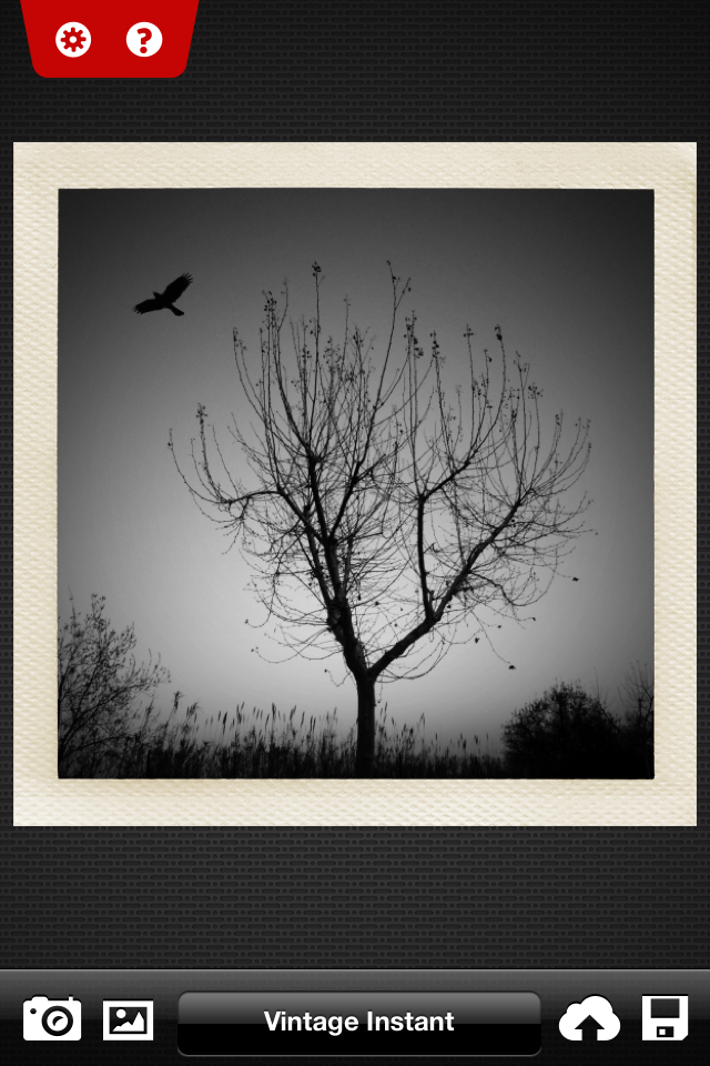 La idea es que la foto tenga un aspecto misterioso por lo que seleccionaremos el filtro “Vintage Instant 023A” en blanco y negro y con un marco. Importante guardar en el carrete la imagen.