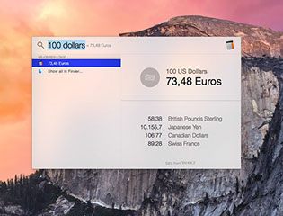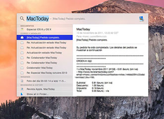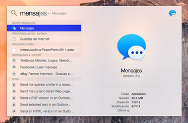 Dejando de lado Handoff y Continuity, hay otras características de OS X que han sufrido mejoras, como el caso de Spotlight, que ahora nos muestra una ventana en medio de la pantalla al más puro estilo Alfred.