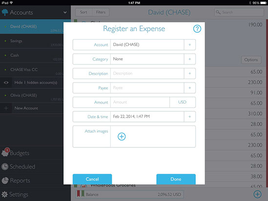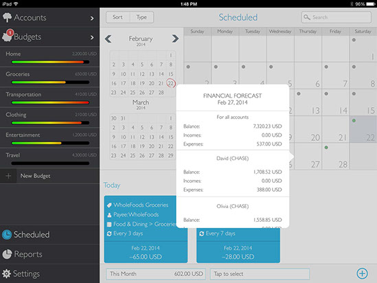 Por su parte, la versión de iPad cuenta con un diseño muy bueno el cual no tiene nada que envidiar a su versión de Mac. Utilizar la app con el iPad en posición horizontal es toda una delicia y, obviando las diferencias puramente estéticas, recuerda en su disposición a la versión de Mac. En vertical la sensación es totalmente distinta, la aplicación carece de menú lateral y deja todo para las ventanas flotantes, las cuales son algo confusas y no terminan de convencer. La utilización de estos elementos hace que tengamos la sensación de estar ante una app de 2010 en vez de estar utilizando una de 2014. Y por si fuera poco el paso entre las distintas secciones de la aplicación deja mucho que desear. Puede que la interfaz de MoneyWiz deje un poco que desear, sin embargo sus capacidades hacen que nos olvidemos rápido del aspecto visual.