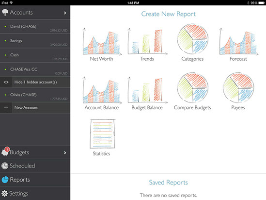 Una vez hayamos añadido una buena cantidad de ingresos y gastos, podemos empezar a pasarnos por la sección de Informes, donde encontraremos múltiples estadísticas sobre nuestra economía personal. Informes que van desde la evolución en los últimos meses de nuestro patrimonio neto, pasando por el porcentaje del gasto que corresponde a cada categoría, hasta las tendencias de ingresos y gastos de cada mes. Todos estos datos están a salvo gracias a SyncBits, el servicio de sincronización en la nube de MoneyWiz. Personalmente es uno de los aspectos que más me gustan, sobre todo después de haber sufrido pérdidas importantes de datos con los servicios que utilizaban otras apps. El servicio, que ha sido desarrollado exclusivamente para la app, es totalmente gratuito por lo que no tenemos ninguna excusa para no utilizarlo. El sistema no tienen ninguna pega: sincroniza todo en segundos y no pierde fluidez con el paso del tiempo. Además al no utilizar iCloud como método de sincronización, podemos compartir la cuenta fácilmente con nuestra pareja o acceder a esos datos desde su versión para Android.