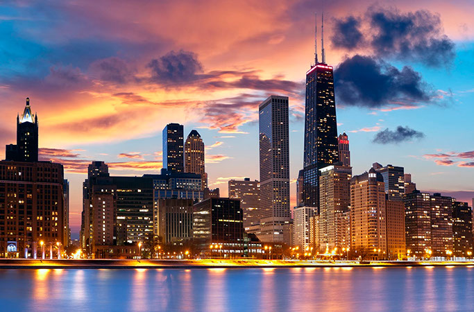 Para comenzar nuestra ruta particular, debemos ir a Chicago, la ciudad del viento, situada en el estado de Illinois, en el condado de Cook (Para los fans de Apple esto os resultará gracioso), al lado del lago Michigan. Eso significa que tendrás que entrar en USA, por lo que necesitarás el pasaporte y pedir un visado de no inmigrante. Para más información, consulta en la web de la embajada de USA en España. Teniendo ya todos los papeles listos ¡Rumbo a Chicago! Aterrizarás en uno de sus tres aeropuertos: O’Hare, Midway o Meigs Field. Puede resultar llamativo, pero es que habrás llegado a la segunda ciudad más poblada de Estados Unidos. Una vez ahí, podrás utilizar la amplia red de transportes con la que cuenta la ciudad. Tiene tanto autobuses como una vasta red de trenes que funcionan las 24 horas del día. Todas las partes de la ciudad y su periferia están perfectamente conectadas, por lo que hasta que no decidas irte de ahí no necesitarás alquilar ningún coche. También puedes alquilar una bicicleta, pues es una ciudad que tiene predilección por los ciclistas, contando con muy buenas infraestructuras. Respecto al clima, en verano es parecido al de España, pero en invierno hace más frío, con mínimas de hasta -25ºC y máximas de 0ºC. Una vez teniendo eso claro, quizás quieras disfrutar de los muchos edificios arquitectónicamente curiosos, como el Wrigley Building, cuyo diseño se basó en el de la giralda de Sevilla. También contarás con muchos museos, como Art Institute o el Field Museum of Natural History. Respecto a la música, Chicago ha hecho grandes aportaciones al Blues, Jazz, Soul y Gospel. También es la cuna del House, y cuenta con grupos de múltiples estilos tales como como Chicago, The Smashing Pumpkins y OKGO. Nunca te aburrirás en esta ciudad.
