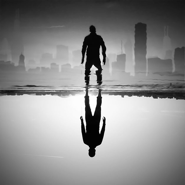 El primer paso es alinear y encuadrar la foto a formato 1:1, a su vez girarla 180 grados. Todo ello con la aplicación Snapseed. Después con la aplicación Image Blender aplico la ciudad que se ve de fondo, que es de otra imagen. El Image Blender es una aplicación para mezclar dos fotos, pudiendo también mezclar la parte que más nos interese de las mismas. En este caso, sólo han sido los edificios.