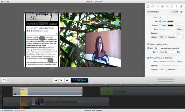 ScreenFlow pone al alcance de sus usuarios las herramientas necesarias para crear vídeos tipo tutorial, así como los habituales proyectos de fotos, texto y vídeos (familiares o profesionales). Una herramienta muy versátil sin necesidad de tener un nivel alto de conocimientos audiovisuales (aunque sí es cierto que tener una ligera base ayuda mucho a desenvolverse por la interfaz por primera vez), disponiendo en este sentido en todo momento de una serie de vídeos explicativos cortos y muy claros (en inglés, eso sí) en su misma página web, explicando cómo usar sus herramientas y las posibilidades de éstas, facilitándonos la tarea e incluso dándonos ideas.
