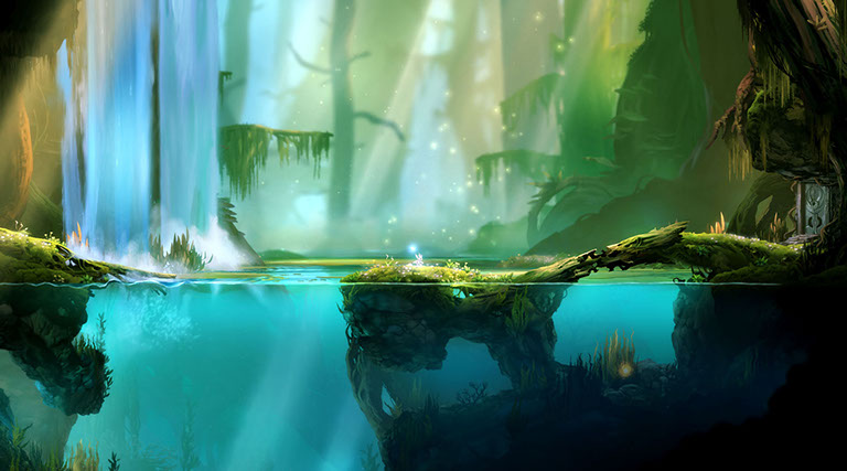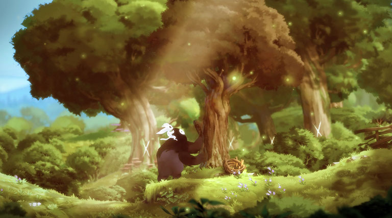 Cuatro años, nada más y nada menos, es lo que han dedicado en Moon Studios a desarrollar esta maravilla. Es, sin ninguna duda, el lanzamiento más esperado en el género de las plataformas 2D para este 2015. Aunque estemos en abril, así me atrevo a afirmarlo. Por un momento te pido que te pares a admirar las capturas de pantalla que acompañan este artículo. ¿Dibujos bonitos? Sí, por supuesto, todo un alarde en el uso del color y la luz, los trazos, el entorno, los personajes, los elementos que aparecen en esas ilustraciones parecen eso, arte destinado a vender un producto, a promocionarlo. Pero no te equivoques, no es sólo eso.