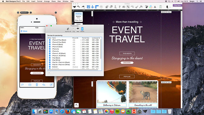 Otra característica interesante de Mail Designer Pro 2 es la forma en la que te permitirá editar tu newsletter para conseguir que se ajuste a la perfección a la resolución de los distintos dispositivos en los que podría visualizarse. Para ello, podrás hacer uso de una herramienta que te permitirá escoger entre un gran número de dispositivos móviles de la compañía de la manzana (desde el iPhone 4 hasta el iPhone 6 Plus, pasando por varios modelos de iPad e incluso el reciente Apple Watch) y varios smartphones con Android instalado. Pero no solo eso, sino que también podrás crear tus propios dispositivos personalizados por si te interesa comprobar el aspecto de tu newsletter en uno en concreto. Para ello, simplemente tendrás que indicar su nombre, sistema operativo (a elegir entre iOS, Android, Windows y Blackberry) y su resolución (vertical u horizontal). De esta forma, obtendrás una representación gráfica que te permitirá comprobar la forma en la que lucirá la newsletter en un smartphone o tablet determinado. Gracias a esta función no tendrás que ir comprobando el resultado en distintos dispositivos de forma manual, sino que podrás limitarte a insertar texto, imágenes y vídeos arrastrando los distintos elementos por la plantilla hasta obtener el resultado esperado, independientemente de que la newsletter vaya a ser visualizada en ordenadores, dispositivos móviles o relojes inteligentes. Además, Mail Designer Pro 2 te permitirá personalizar por completo el contenido del email en texto plano con el objetivo de que pueda ser visualizado correctamente en todos aquellos dispositivos en los que el contenido HTML está desactivado. Sin duda, la posibilidad de controlar por completo el acabado de tus newsletters supone una enorme ventaja en el mundo del marketing online, y es que lograr el acabado óptimo te permitirá generar un mayor interés por la información suministrada.