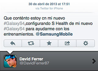 Eso creyeron en Samsung cuando pensaron que sería buena idea proponer a David Ferrer que twittease maravillas de su terminal Samsung Galaxy S4. En estas ocasiones, la intención no es lo que cuenta, sino el cliente de Twitter; la delatora app deja una huella que en este caso determinó que la publicidad se la llevase justo la competencia. Fuese por parte de quien fuese, porque hay que tener en cuenta que estos asuntos los suele llevar un community manager, el autor se apresuró a borrar el tweet, una medida inofensiva teniendo en cuenta la rapidez de captura de pantalla que tienen los usuarios, haciendo que el #EpicFail permanezca siempre presente.