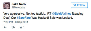Los caminos del marketing son inescrutables, o al menos eso parece cuando se tienen ideas como la de aprovechar algo como un hackeo a la intimidad de numerosos personajes famosos para lanzar una oferta. Ése fue el caso de Spirit Airlines, quienes tuvieron la horrenda idea de hacer leña del password caído cuando se publicaron fotos robadas de los almacenamientos en la nube de famosas como Jennifer Lawrence o Rihanna.
