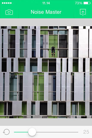 A continuación, utiliza Snapseed para manipular los parámetros de la fotografía hasta conseguir la foto deseada; realiza modificaciones en el contraste (+10), saturación(+15), nitidez (+10) y estructura (+15). Para finalizar, le quita el ruido a la fotografía para evitar grano en ella con NoiseMaster (imagen 8) y termina su edición dándole algo más de estructura con Snapseed.
