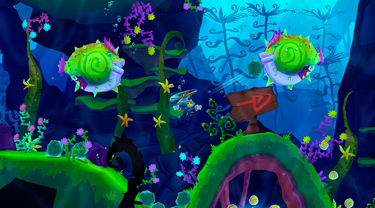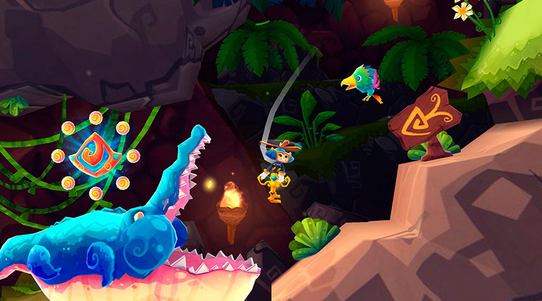 Aquí comienza la acción, a lo largo de cuatro mundos nos encontraremos a la caza de elementos como letras (que formarán la palabra H E R O K I para alcanzar bonos), cofres del tesoro y coleccionables que accionarán tanto el anillo de salida de cada nivel como nos permitirán desbloquear nuevos poderes. Cada nivel puede llevarnos entre 5 a 15 minutos completarlo en función de todo lo que queramos explorar. A veces no nos quedará más remedio que explorar a conciencia para encontrar los dichosos artefactos. Hay bastantes áreas escondidas y zonas a las que inicialmente no accedes y a las que tendrás que regresar una vez realices otras acciones. A pesar de que son niveles relativamente cortos puedes volver a explorar una y otra vez con cual la duración se dispara. De todos modos puedes acabarte el juego en unas seis horas.