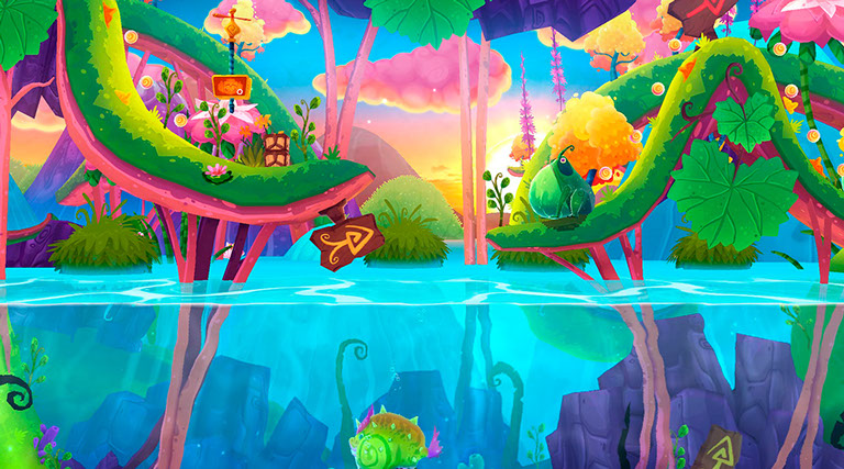 He dejado el apartado gráfico para el final a propósito. Heroki es absolutamente glorioso gráficamente. Altamente colorido, con colores vibrantes y perfectamente combinado, tanto personajes como escenarios están cuidados al detalle. Pero esos detalles no se limitan a las texturas, y es que todo está animado y en continuo movimiento. No se han limitado al personaje principal dichas animaciones y podemos apreciarlo en todos los personajes y el propio escenario. Y no están animados de cualquier modo, se mueven a unos fantásticos 60 fps en dispositivos como el iPad Air y vaya si se nota esa calidad.