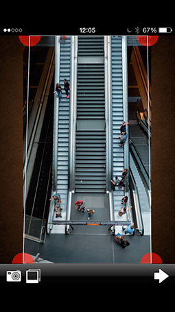 Una vez oscurecido los laterales con la opción “Ajustes”, hace los últimos retoques para subir el contraste y el brillo general de la imagen y dar más fuerza al metal de las escaleras. Otra opción sería abrir la imagen con VSCOCam y aplicar un filtro como el H1.