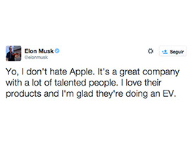 No sabemos realmente si Apple desarrollará un coche o se quedará en el terreno de la investigación y ofrecerá soluciones tecnológicas para coches, como en el caso del Apple TV y el televisor. El CEO de Tesla ha hablado de las contrataciones que ha hecho Apple de ingenieros "despedidos" por ellos. Luego matizó sus palabras: I don't hate Apple.