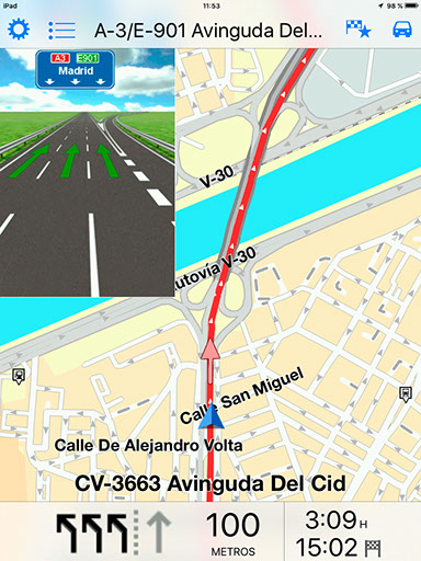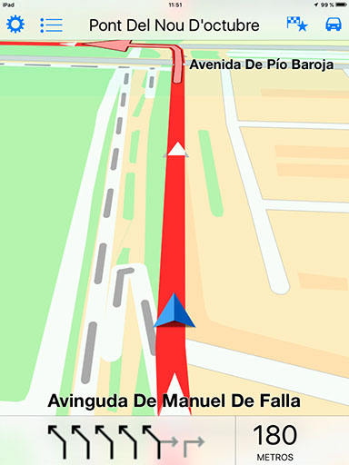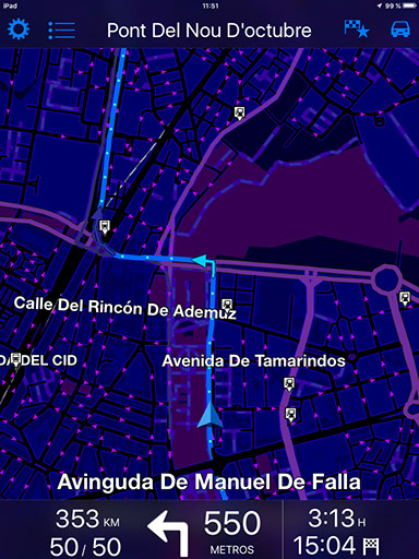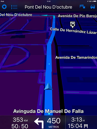 Si nos centramos en las principales características por las que destaca la aplicación, una de las principales es el hecho de que todos y cada uno de los mapas están disponibles sin conexión. De esta forma, es posible utilizar la app en todo momento, incluso aunque no contemos con conexión a Internet. Sin duda, se trata de una ventaja muy a tener en cuenta a la hora de viajar por zonas con escasa cobertura o en el extranjero, donde no podemos hacer uso de nuestra tarifa de datos si no queremos llevarnos sorpresas con la factura. Además, también puede ser útil a la hora de ahorrar batería en caso de situaciones de emergencia. Por supuesto, es importante tener en cuenta que todos y cada uno de los mapas disponibles en TomTom Europa Occidental están almacenados en tu iPhone o iPad, lo que puede suponer una pega para los usuarios de dispositivos con capacidades de almacenamiento menores. En el caso de la versión para iPad analizada, la app ocupa cerca de 2 GB. Al igual que muchas de las alternativas disponibles en la actualidad, TomTom Europa Occidental ofrece navegación guiada paso a paso por voz. En este punto es importante destacar la posibilidad de escoger entre distintas voces, algo que no es posible en otras aplicaciones. Si nos centramos en la interfaz de la aplicación, esta resultará familiar para todos aquellos que hayan utilizado alguno de los distintos navegadores de la compañía. De hecho, los mapas, tecnología y navegación de la aplicación son los mismos que encontramos en los navegadores físicos de TomTom. Otra característica que puede resultar interesante es la posibilidad de escoger entre una interfaz en 2D y otra en 3D a la hora de mostrar la ruta, dependiendo de los gustos y necesidades de cada usuario.