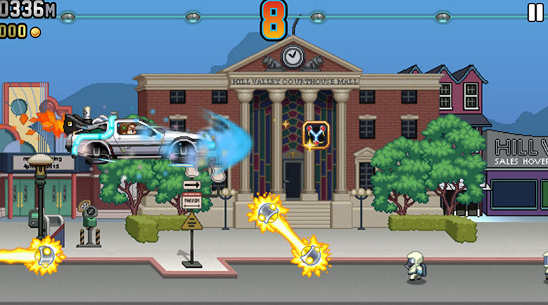 El juego en sí se dota en cada actualización de temas, personajes, situaciones que no dejarán de sacarte una sonrisa al menos. Mi favorito, sin duda alguna, los guiños dedicados a Regreso al Futuro, desde convertir al personaje en todo un Marty McFly, hasta el deseado Delorian que volará por tu pantalla en un modo tan bien logrado que querrás encontrártelo una y otra vez.