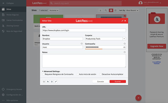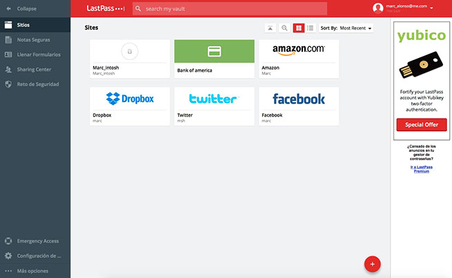Last Pass es una de esas aplicaciones que creo que deberías obligarte a utilizar. Una vez lo hagas te resultará de lo más cómodo y podrás estar tranquilo sabiendo que tus contraseñas están a buen recaudo y que son lo suficientemente potentes como para no poner en peligro tus datos innecesariamente. Cuenta con una versión gratuita que, en la mayoría de casos, será suficiente. Pero si ves que te gusta y que necesitas más podrás optar por la subscripción premium que ofrecen. Una buena alternativa a la archiconocida 1 Password. Pruébala y en unas semanas nos cuentas qué tal.