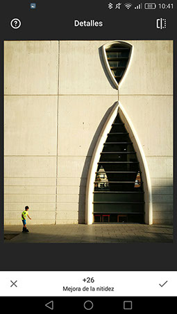 Una vez que hemos conseguido modificar la perspectiva con unos sencillos pasos, es el momento de editar alguna característica de la foto y nos iremos a la aplicación Snapseed que, como hemos comentado en numerosas ocasiones, deberías tener como app obligatoria en tu smartphone y, además, después de las novedades que recientemente han introducido como la inclusión de texto en las imágenes, corrección de perspectivas, entre otras. Con Snapseed vamos a mejorar la nitidez de la fotografía con la opción Detalles.