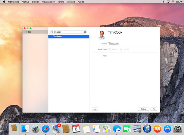 Evidentemente si estás editando un contacto en iOS 8 y estás demasiado cerca del Mac te aparecerá el icono de contactos en el dock, icono que si lo pulsas te abrirá el contacto que estás editando desde el iPhone. Ya, si eso, tú eliges dónde seguir editándolo.