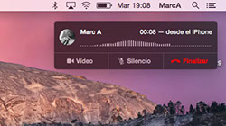 El proceso será el siguiente: suena tu iPhone, te aparece la notificación en la pantalla de tu Mac, descuelgas desde tu Mac, hablas y cuelgas cuando acabes. Mira, mira... (pulsa en las miniaturas).