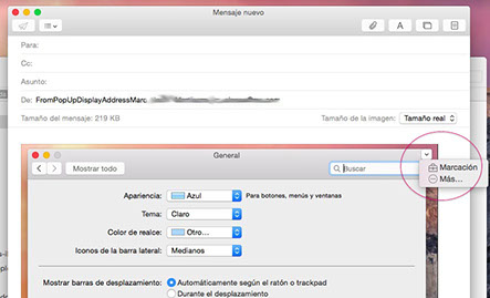 Pues se acabó. A partir de otoño harás lo siguiente: Adjuntarás la foto o captura de imagen a un correo, pulsarás encima de la foto y te saldrá un menú en la parte derecha de la foto. Si pulsas en “Marcación”, de repente, aparecerán unos iconos en la parte superior de la imagen para que puedas escoger el tipo de anotación que quieres realizar. Mira la secuencia de la izquierda.